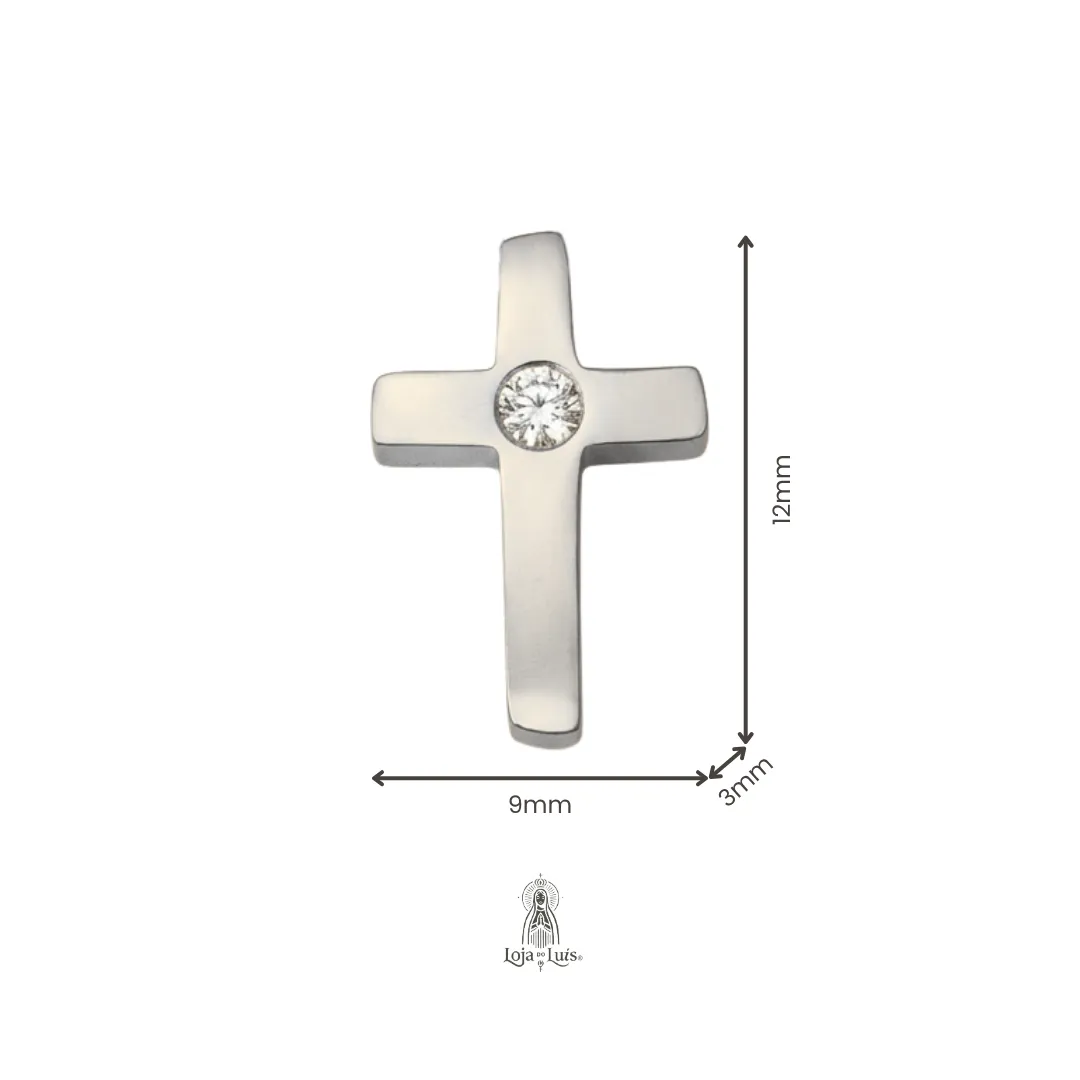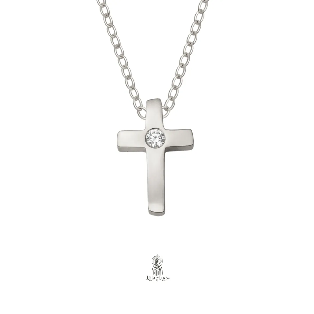 Colar com pingente em formato de Cruz Latina com brilhante centralizado.