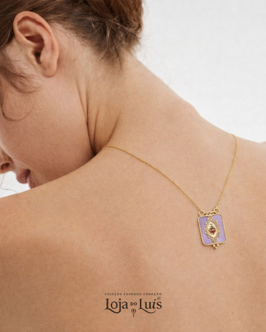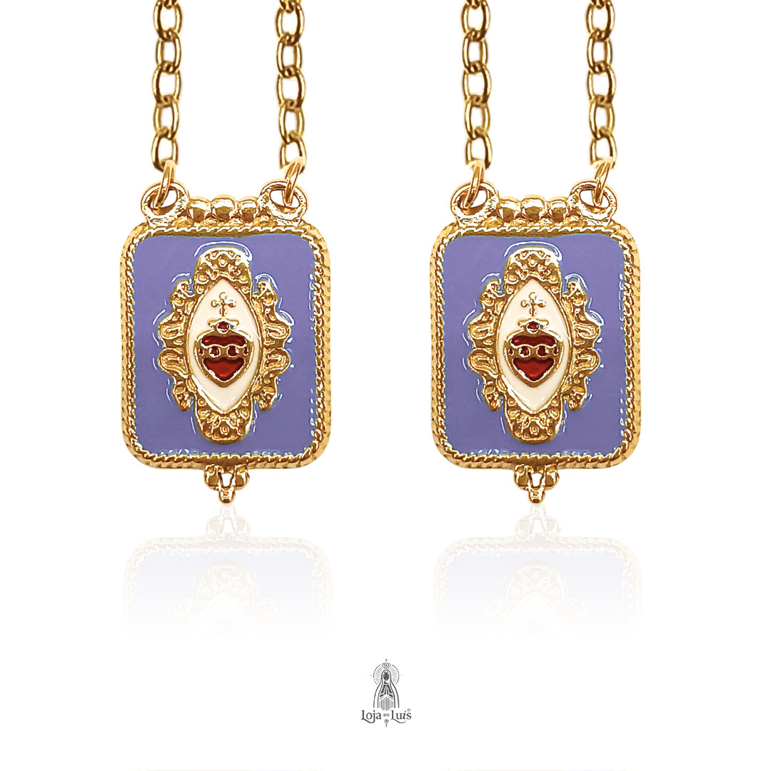 Escapulário Sagrado Coração com medalha rectangular esmaltada.