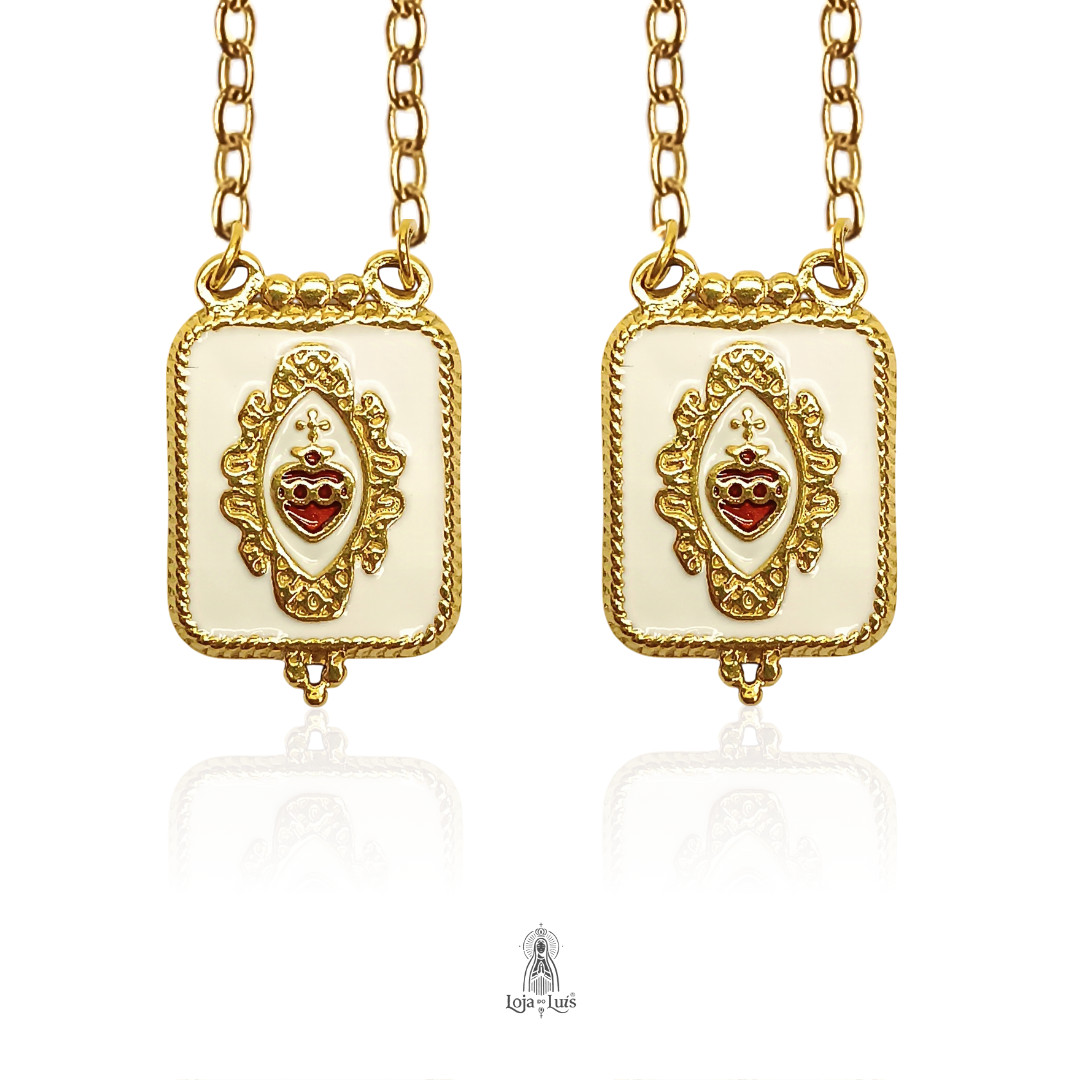 Escapulário Sagrado Coração com medalha rectangular esmaltada.