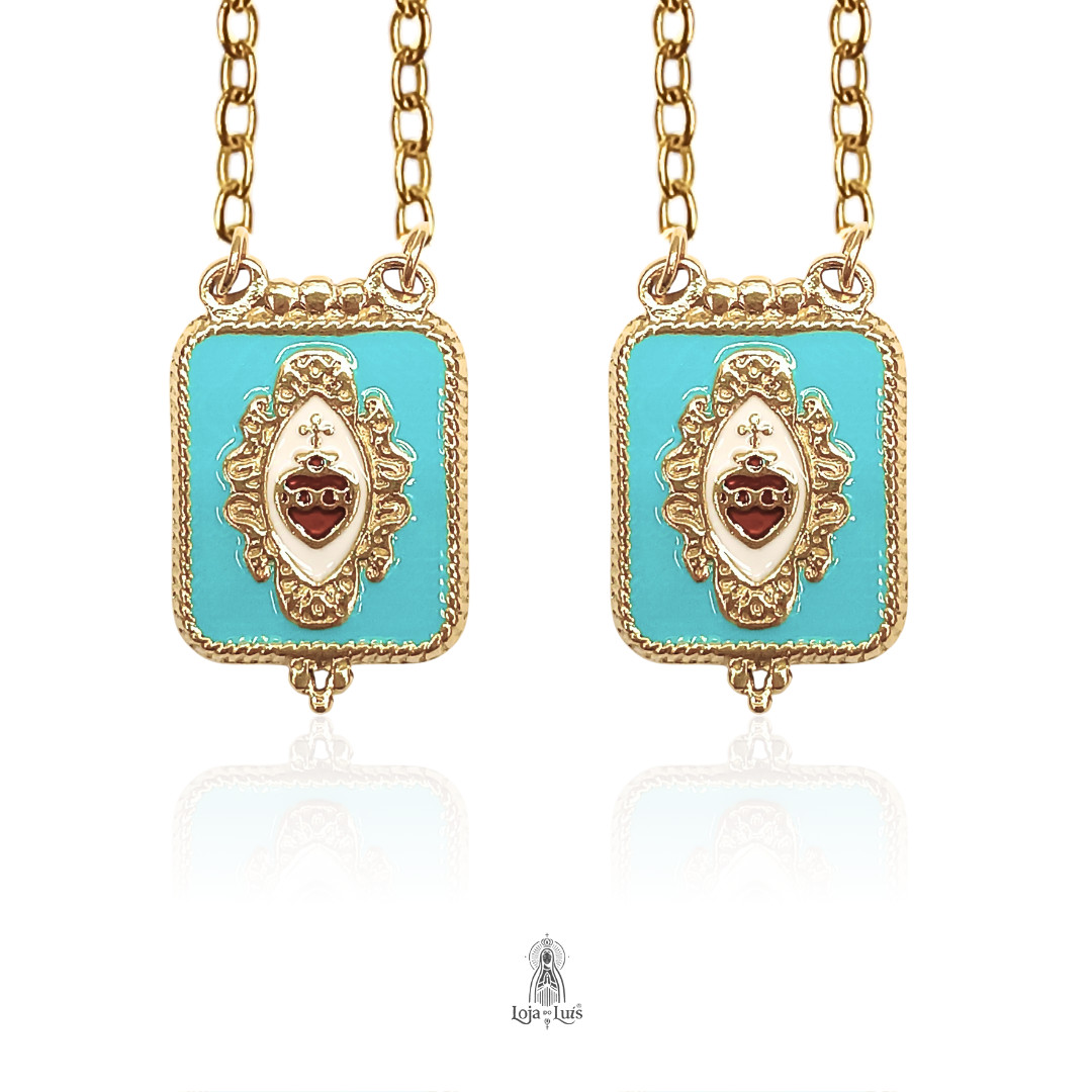 Escapulário Sagrado Coração com medalha rectangular esmaltada.