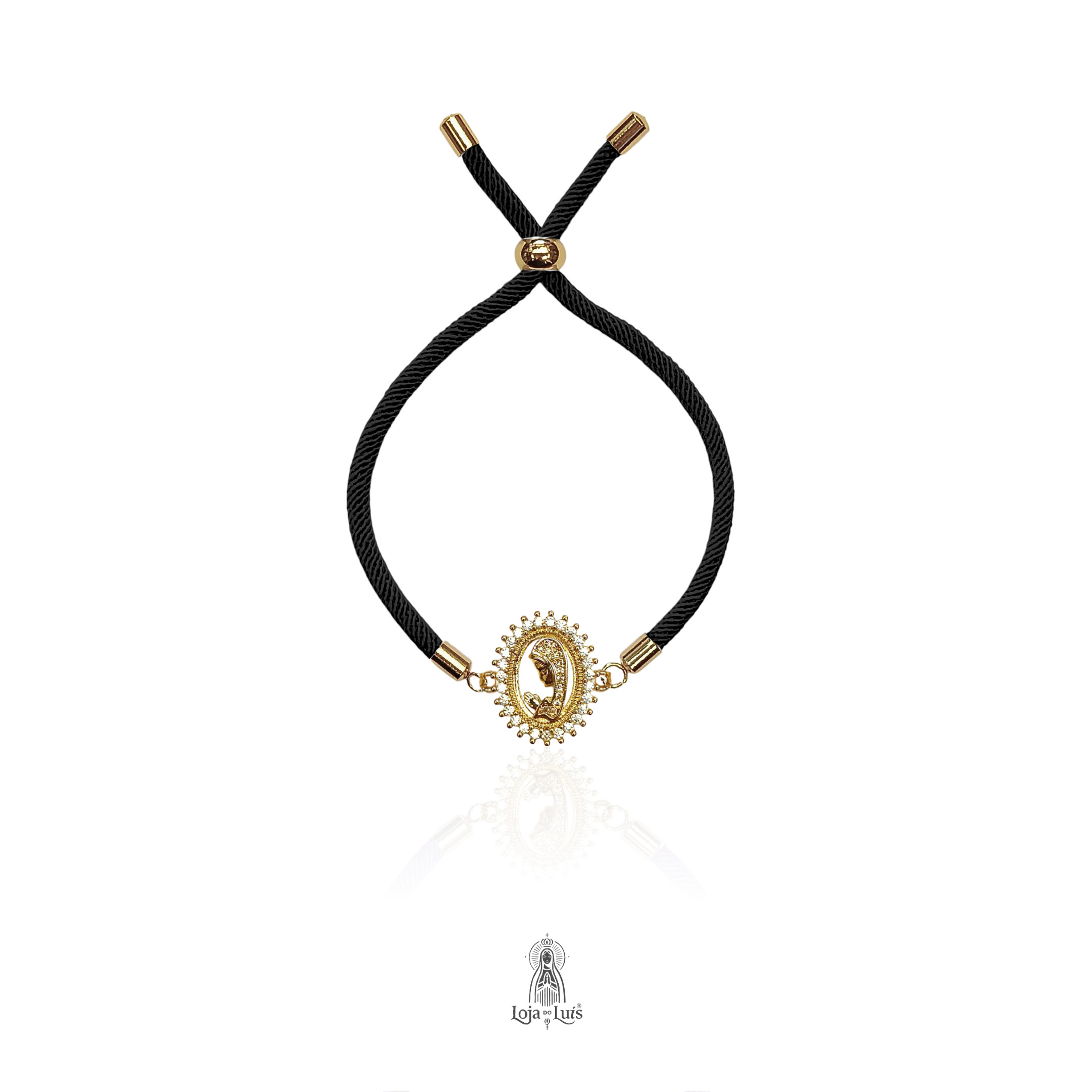 Pulseira MESCRAI com medalha oval religiosa de Maria, interior e contorno com zircónias, banhado a ouro e prata.