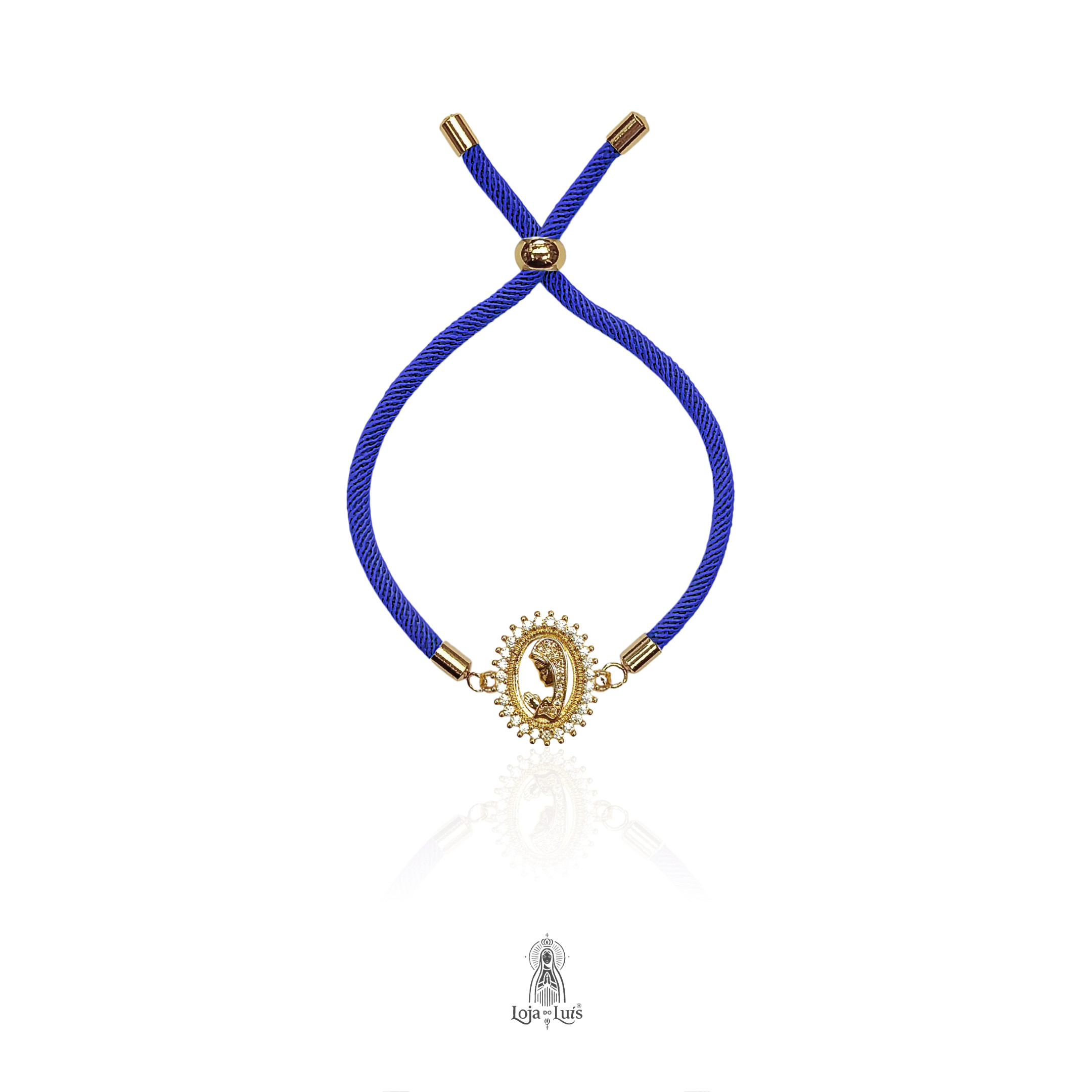 Pulseira MESCRAI com medalha oval religiosa de Maria, interior e contorno com zircónias, banhado a ouro e prata.