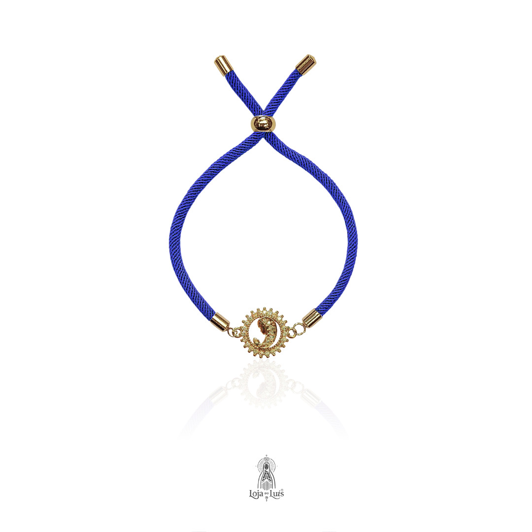 Pulseira MESCRAI com medalha redonda religiosa de Maria, interior e contorno com zircónias, banhado a ouro e prata.