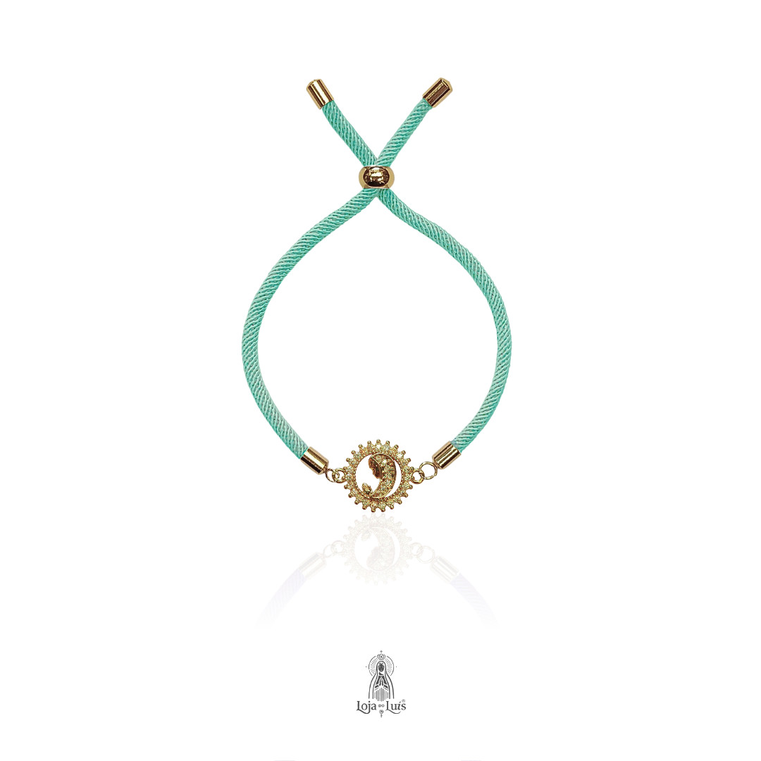 Pulseira MESCRAI com medalha redonda religiosa de Maria, interior e contorno com zircónias, banhado a ouro e prata.