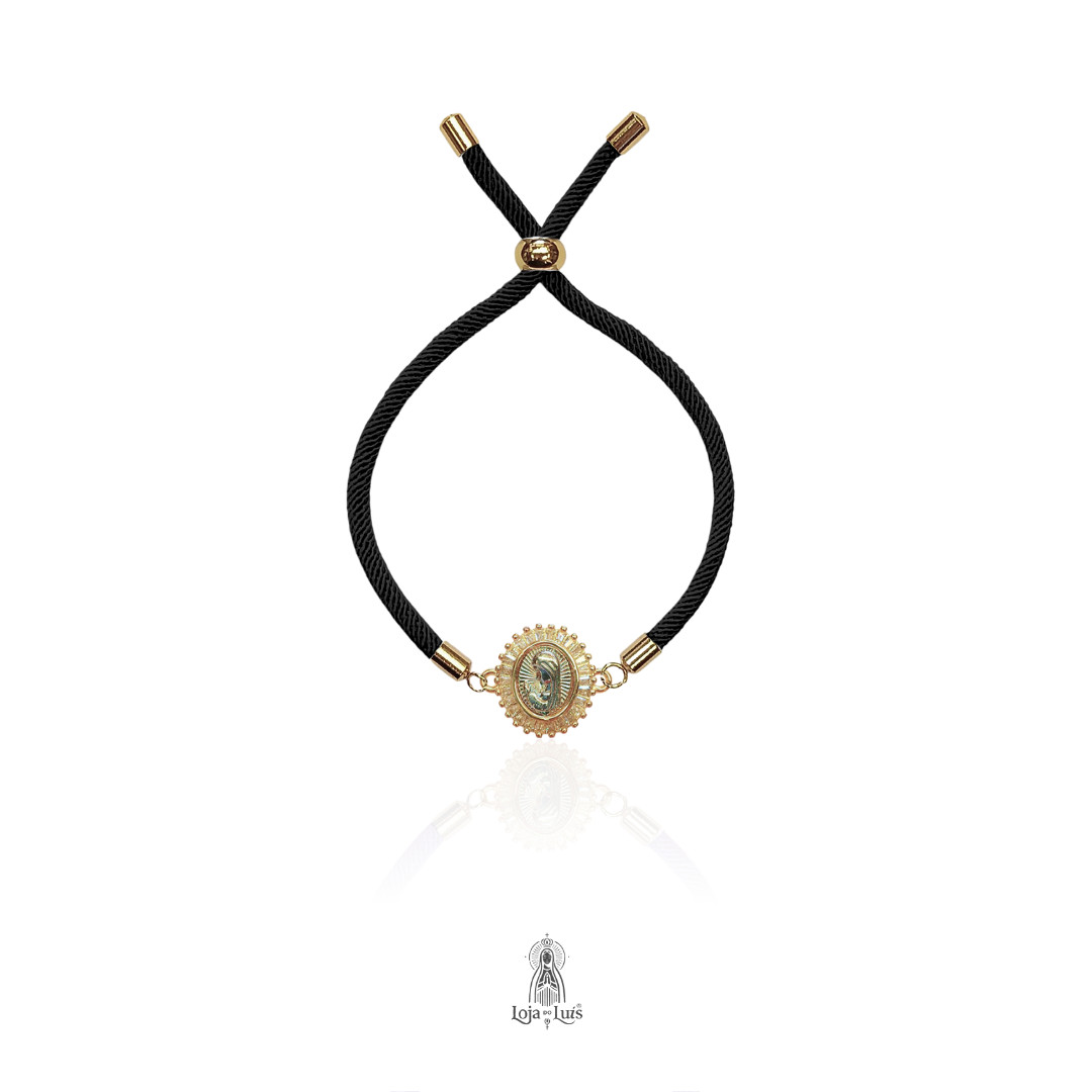 Pulseira MESCRAI com medalha oval religiosa de Maria, interior e contorno com zircónias, banhado bicolor.