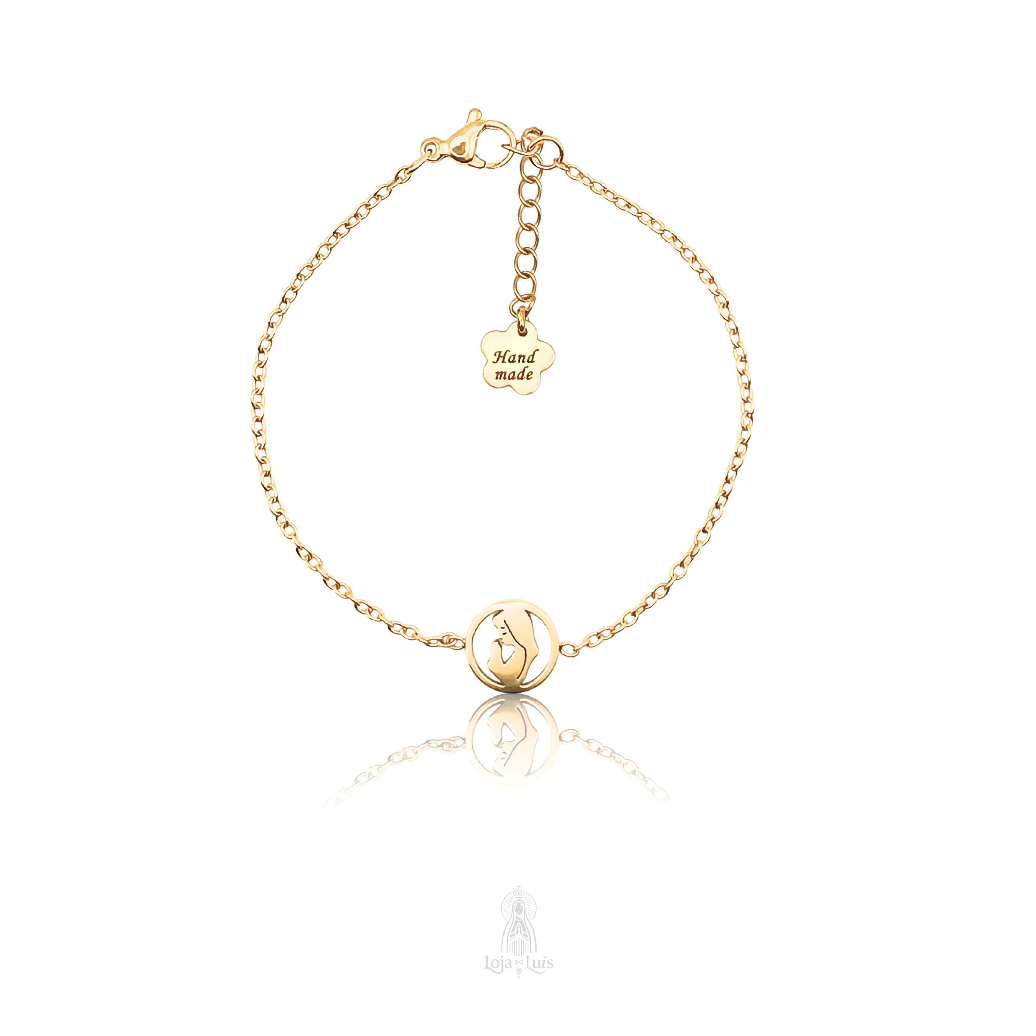 Pulseira Maria com malha corrente e medalha central redonda (10mm)